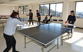 卓球台を3台、用意しています。ラケットやピンポンも無料で貸し出ししているので、教習の空き時間にご利用ください。教習生にも好評です。